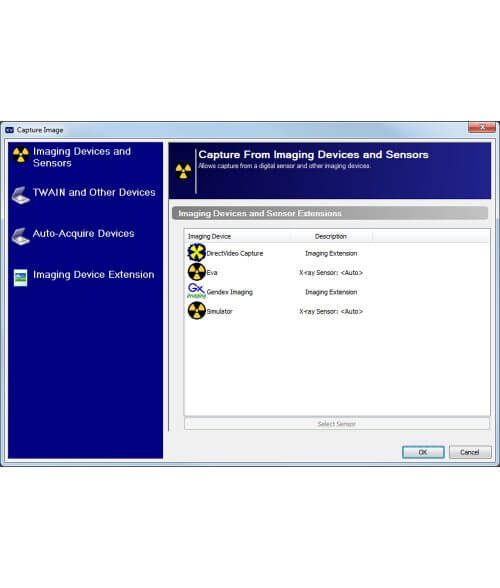 - Ability to aquire images from most digital intraoral sensors, digital pan and ceph devices, and phosphor plate scanners